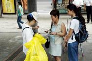 这名印度老伯伯非常关心法轮功控告江泽民的事,伫足观看整个新闻发布会过程,还不时向旁边的法轮功学员查询。法轮功学员向途人派发控告江泽民的资料。