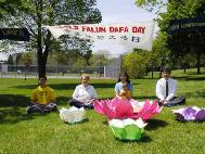【明慧网2003年5月27日】5月17日,美国南达科他州法轮功学员在Sioux Falls 公园举行活动,庆祝世界法轮大法日。