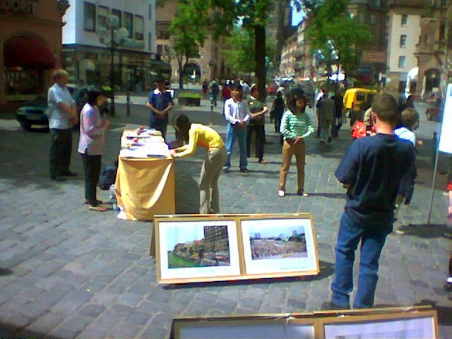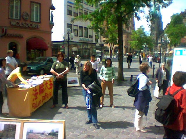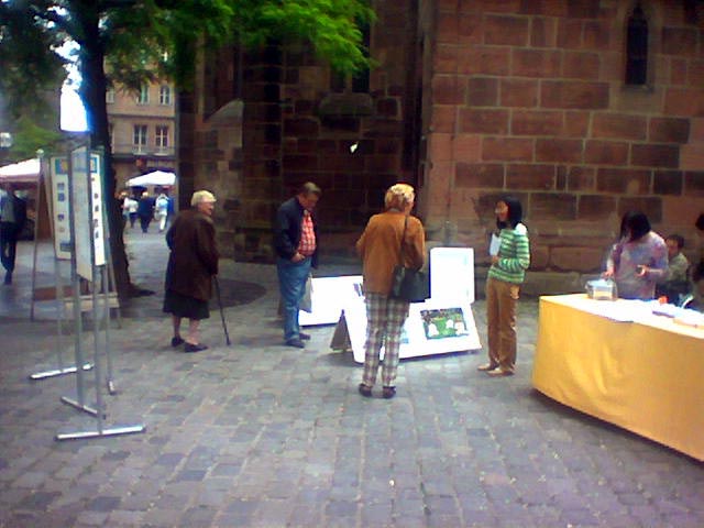 很多人造访了我们的展位,我们有机会向许多人讲述迫害的真相。一位纽伦堡地方报纸的记者也来到我们的展位并照了像。