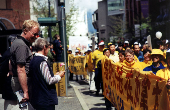 五月十八日,本也阴沉细雨的天空,却瞬间地放晴了。一千多名来自世界各地、年龄各异、背景不同的普通人——法轮大法修炼者,给这个世界上最美丽的城市,带来了无尽的温暖和清澈。温哥华人在享受这突然而至的五月阳光的妩媚时,更被这群普普通通人的特殊的善良、纯洁和平和的气氛所感染。
