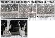 比利时安特卫普报5月12日报导,马地亚斯-斯拉茨,一位30岁的根特居民,曾于2002年因抗议中国政府对法轮功的镇压而在中国被捕。他在“德瓦培”一个靠近“德美尔”的地方静坐入定。法轮功已经秘传数千年,直到1992年才被介绍给公众。在传出的最初七年里,法轮功获得了很多褒奖。但是从1999年开始,中国政府开始镇压这一超过一亿人的人群。在我们的国家,修炼法轮功是自由的,这一点从这周六他们在“德美尔”和“德范维生贝克街”的活动得到了印证。