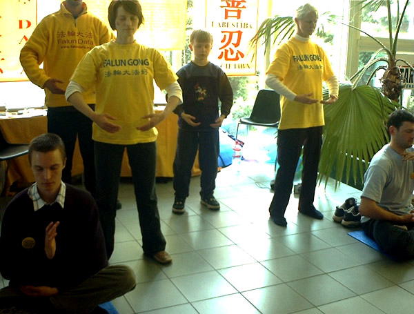 【明慧网2003年5月31日】不久前,法轮功学员在爱沙尼亚塔林举行的大地节中向人们展示了法轮功功法。