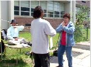 一整天,学功的人络绎不绝。尽管天很热,学员们一遍又一遍地炼功,教功,向游人洪法讲真相。法轮功的美好震撼了世人,很多人都询问附近的炼功点的地点和时间,表示要参加集体炼功。