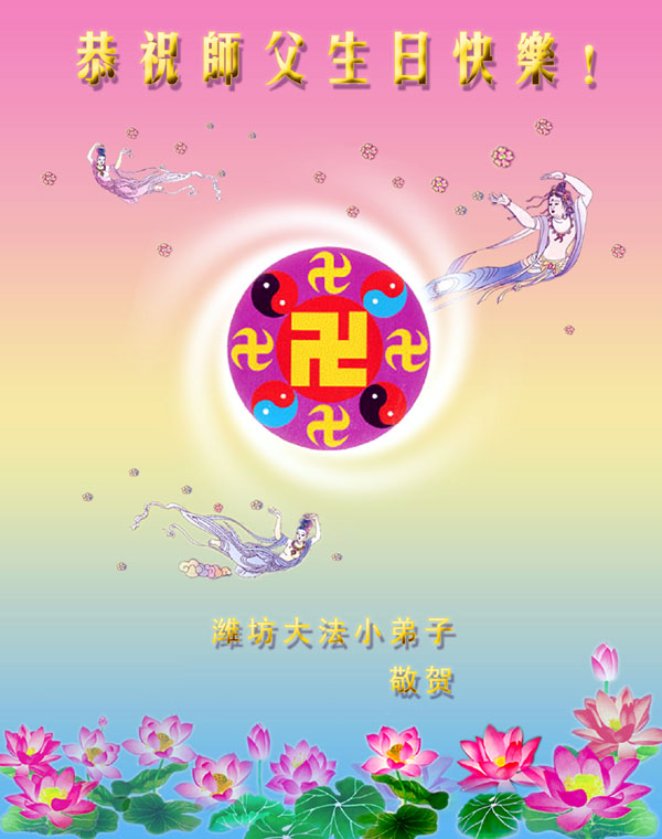 祝您生日快乐,我们潍坊大法小弟子,在正法的最后时期一定抓紧时间讲清真相,救度世人。做好师父讲的三件大事,精进实修。决不辜负师父的慈悲苦度。