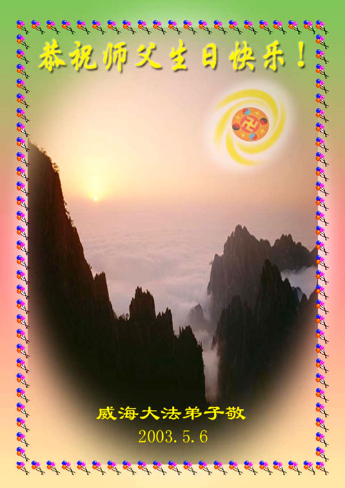 在这普天同庆的日子,我们代表湖南长沙的大法弟子向伟大的师尊致以最崇高的敬意!并祝师尊生日快乐!我们将谨遵师尊教诲,精进实修,紧跟正法进程,整体提高!”