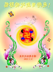 祝师尊生日好!在这场史无前例的迫害中,我们遭受了许多损失,也在几年的摔摔打打中成熟了不少,我们绝不辜负师尊的慈悲苦度,在揭露邪恶、救度众生、证实大法的正法进程中走好稳健的每一步。