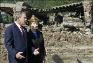 【明慧网2003年6月1日】】(法新社波兰奥斯维兹三十一日电) 美国总统布什今天走访位在波兰奥斯兹的二次大战死亡集中营,向命丧纳粹犹太大屠杀之下的受害者敬致哀悼,布什警告举世,勿坠入对「邪恶」姑息养奸的危险。布什在参观奥斯维兹死亡集中营煤气行刑室焦黑的废墟后说:「这个地方是一出悲剧,它提醒世人邪恶的力量,以及必须起而反抗邪恶。奥斯维兹也提醒世人,每当反犹太主义蠢动重现,人类必须精诚团结,反抗此类黑暗的能量。」