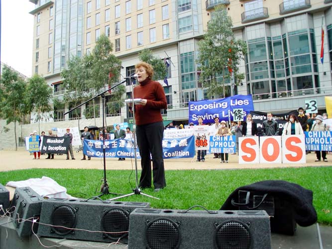 中国民运海外联席会议澳洲分部的吕占锁先生代表基督徒发言说,宗教迫害的问题在中国十分严重,据“调查中国宗教迫害委员会”的报告来看,中国政府不但在镇压法轮功的运动中采取了种种残忍和非法的手段,对基督徒的待遇也很不人道。自改革开放以来,在6000万以上家庭教会信徒中,有270万人被任意拘留过,也就是说,22个信徒中就有1人被拘留过。而且,据统计,共有44万人被判劳改,1万多人被迫害致死,2万多人被苦刑致残,数目惊人。吕先生对7000万基督徒在中国的处境表示担忧。他呼吁人们能行动起来,敦促中国政府停止对所有宗教和信仰团体的迫害并根据联合国人权宣言的条款,在中国允许充分的信仰自由。