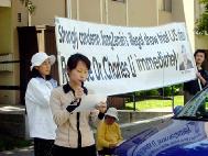 日本大法弟子中使馆前发正念 支持公审江(图)
