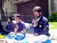 【明慧网2003年6月11日】6月7、8两日10时至23时,日本大法弟子汇集在中国使馆前,每逢正点发正念,支持在全球范围内以反人类罪、酷刑罪及群体灭绝罪公审中国人权恶棍江泽民。