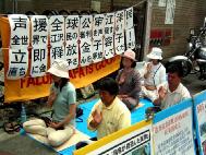 、救度世人和清除邪恶的重要意义后,从6月11日开始每天连续24小时在大阪领事馆前发正念,支持全球公审江,并呼吁立即释放被中国无理关押的金子容子女士。