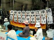 日本大法弟子中使馆前发正念 支持公审江(图)
