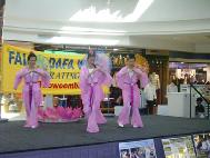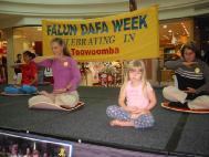 接下来,学员们为公众穿插演示了法轮功五套功法,并表演了优美的中国传统舞蹈,受到观众们的热烈欢迎。人们都被优美祥和的法轮功吸引住了,一个小女孩禁不住爬到台上和学员一起认真地打起坐来。