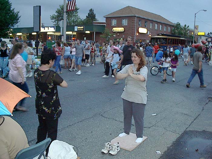 游人学炼法轮功过往游人纷纷为呼吁释放李祥春而签名今天刚参加了法轮功教功班的德波瑞 (右)