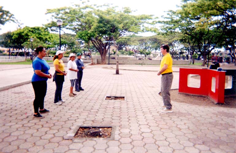 我们游览了盖雅企尔市内及近郊多处风景优美的公园。在那里我们向民众示范法轮功五套功法,并散发西班牙文的大法资料和光碟。我们告知许多与我们谈话的民众如何从电脑网络上下载法轮大法书籍和从当地图书馆借阅的可能性。