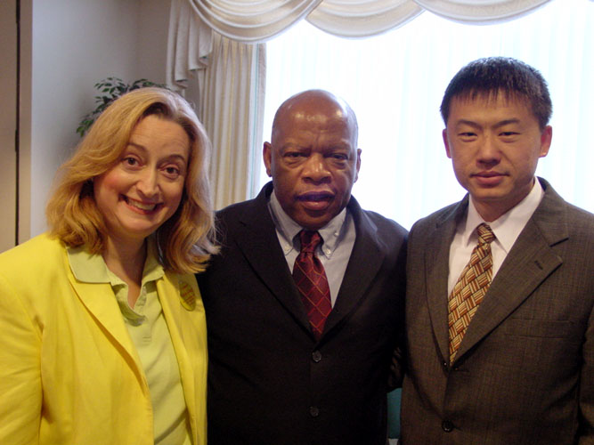 | 6月14日吕朝晖和斯麦纳市长麦克斯-贝肯 | 6月14日吕朝晖和美国国会议员代表约翰-路易斯的合影 |