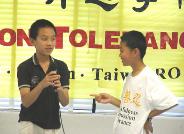 多位小同修上台讲述了他们学法炼功,讲真相的故事,很多都是用中文讲述的,没有稿件,但他们却都是在国外长大的孩子。大法为他们开启了智慧。一位刚刚4岁的小同修已经连续阅读《转法轮》四遍了,并且现在已经可以和大同修们坐在一起,流利地读《转法轮》了。明慧学校中已经有两位小同修在背《转法轮》,其中一位十岁的小弟子已经在背第二遍,他背到了第九讲。