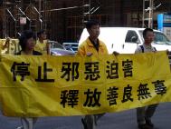 一位沿途发资料的西人学员说,“人们都渴望着了解真相,当我告诉人们诉江案时,他们都很感兴趣;我告诉执勤的警察说,我很高兴能生活在这样一个国家,能在警察的保护下进行这个游行。警察却告诉我,谢谢你们。”