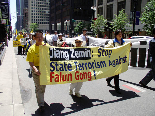 公审江泽民 芝城市中心举行1500人法轮功大游行(图)