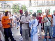 最近,我们到一个华人常去的街区展示法轮功功法并阐述在美国对江泽民诉讼案的真相。许多人想更多的了解功法并对江集团对和平的法轮功修炼者的镇压表示愤慨。许多年轻人学炼功动作,还表示了修炼功法的愿望。相当多的人在起诉江的签名表上签名,其中许多人来自中国大陆。还有一些年轻的大陆中国人表达了他们对在中国违反人权的状况的愤慨。