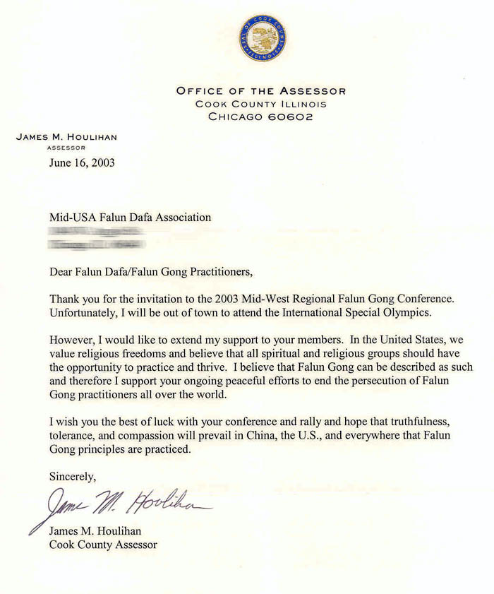 感谢您邀请我参加2003年中西部地区法轮功心得交流会,不巧的是我要去外地出席国际精神残障人士奥林匹克运动会。