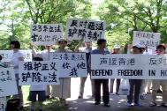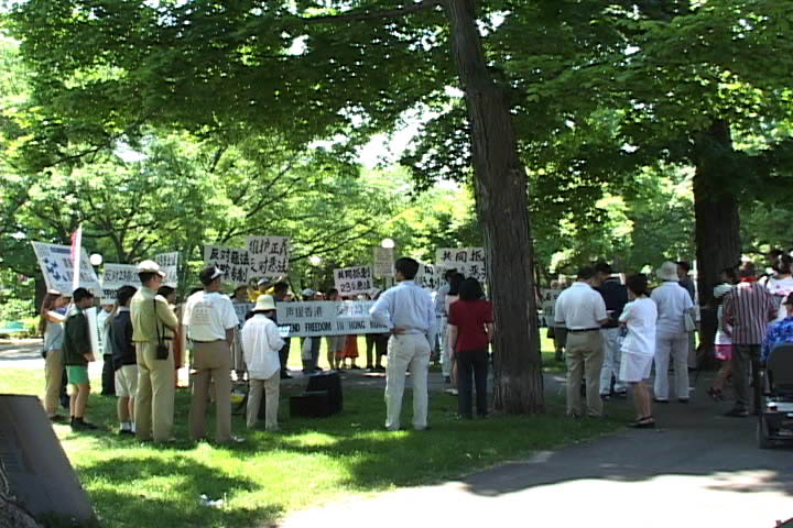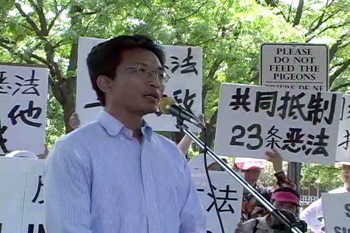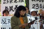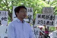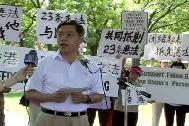 “渥太华民主中国”主席杜先生在集会上发言全球反对23条联盟代表Cindy Chen 女士在集会上发言法轮功学员杨先生在集会上发言