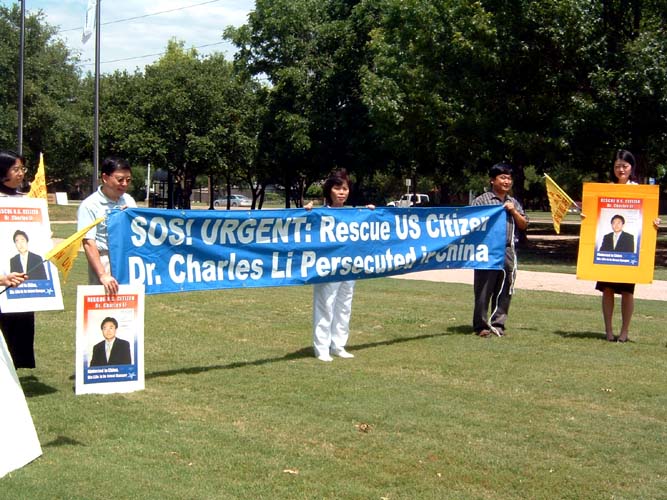 【明慧网2003年6月5日】被中国政府非法拘捕并判刑三年的美国公民李祥春医生因保护自己的应有的权利,坚持揭露邪恶迫害的真相,不向邪恶低头于5月27日在狱中绝食。德克萨斯州达拉斯的法轮功学员于6月3日中午在李察逊区市市政广场集会、发正念,声援李祥春医生,同时紧急呼吁各界伸出援手,帮助他尽早安全返美。