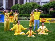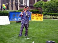 此外,三名学员以他们的经历向人们分享其修炼体悟与感想。在场民众惊讶75岁的赵女士竟能在修炼法轮功后,其所罹患多年且连医生都无法知其名的病能在短期内痊愈,当她述及五年来没吃过一颗药片时,场上发出一片惊叹之声;而当在场民众听到另一位来自普渡大学的博士生魏先生讲述其在中国大陆的岳母刘女士因为炼功而被关押在劳教所时所受的迫害,皆被镇压的残酷所震动;最后西人学员真尼奇先生也讲述了自己的故事。他说学了法轮大法以后,他摆脱了过去不良习惯开始清醒和理智地对待生活,他的家人都相当支持法轮功。活动当天,真尼奇先生的全部家人及部份朋友到场观赏整个庆祝活动。