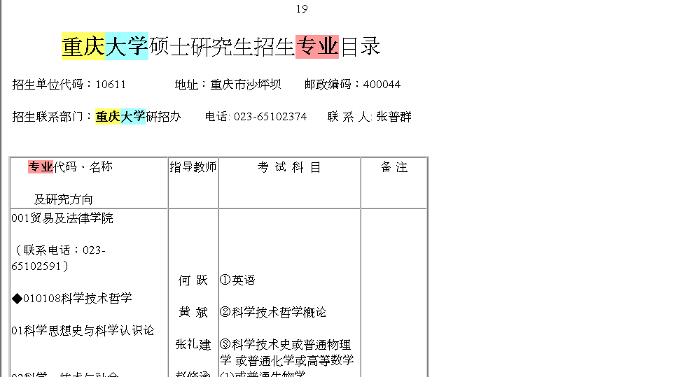 2)重庆大学的研究生招生目录