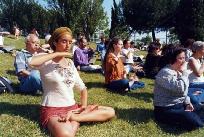 一走进博览会入口大门,首先映入人们眼帘的便是在草坪上正在展示优美功法的法轮功学员们的身影。不怪人们说“法轮大法是健博会的一道特殊景观”。博览会主办者也开玩笑地对我们说:“你们法轮大法快成了博览会的专场展示会了。你们知道吗?法轮大法是唯一享有可以在室外展示这一特权的参展者。”