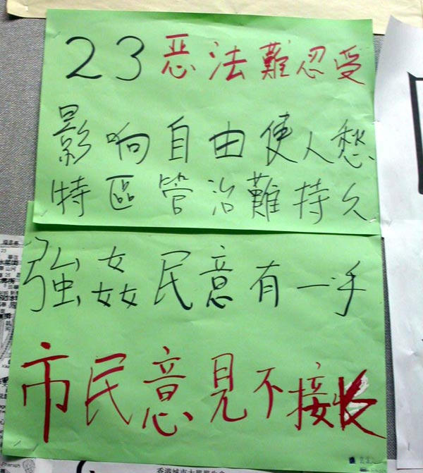 年青一代的香港市民是否知道二十三条、七一游行?结果发现他们并非死读书,也关心时事,同时他们也相当了解董建华政府。就读中学四年级的萧同学及罗同学说:「我们都略知二十三条对我们的影响。我们是反对二十三条立法的。但相信政府不会理会。」他们认为明天香港应该有很多人如民主党等会参加游行,所以不需要他们参与。他们最后补充说:「我们会暗地里支持,但不会参加游行。」