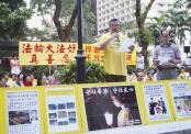另外,民主党在天星码头的一百小时绝食反二十三条行动进入尾声,绝食人士仍精神奕奕,志气昂扬。昨天的特备节目是「无法无天23条」官差出巡,一名剃光头男士手持雨伞,颈上挂上写着「我系无法无天23条」的牌子,两旁分别有两人持「肃静」、「回避」的大牌子,“凶恶地”在行人道上横行。