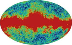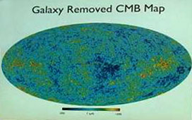 S:这是一个人造卫星叫做WMAP作出的成果。(全名Wilkinson Microwave Anisotropy Probe)。这个卫星是我们用来测量整个天空的。
