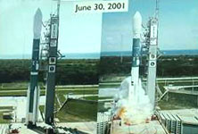 这是发射前的图片,这是正在发射的图片,它是2001年6月30日在佛罗里达发射出去的。