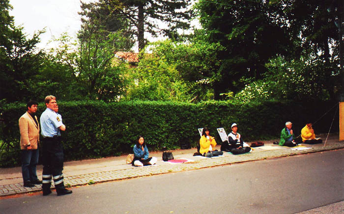 几年来,当地警察局(GENTOFTE)对法轮功的和平、友好以及一贯配合警察工作,遵纪守法已经有了深刻的了解,因而不理会中国大使馆的三番五次的无理抱怨及要求。中国大使馆就绕过当地警察局,把抱怨信送到警方的高层,利用警方高层对我们没有直接了解的弱点,迫使当地警察局在上级的压力下,与他们达成妥协,把我们至少挪到10米以外。