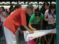 | 学员耐心的解释香港23条立法与台湾的关系 | 学员说:小小一块白布,却蕴含无穷的生机,不论多少人来,总能找到空位再签。 |