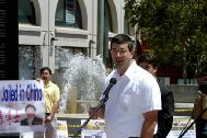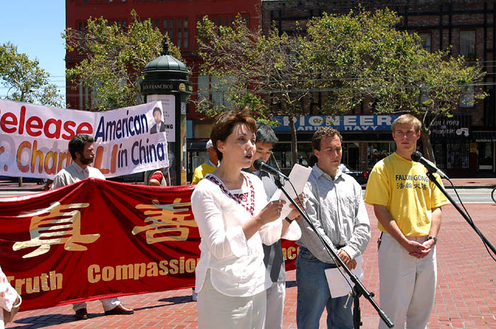集会主持人并宣读了国会议员安娜-伊苏(Anna Eshoo),艾伦-陶赦尔(Ellen Tausher),琳-伍尔西(Lynn Woolsey)和圣马刁(San Mateo)市市长克莱尔-迈克(Claire Mack)关注援救李祥春活动的支持信。国会议员琳-伍尔西在信中指出,中国政府对法轮功学员的镇压是完全不能接受的。自由不是特权,自由是所有人都应享有的权利。中国政府镇压法轮功,这不仅仅侵犯了在中国的自由,这是对所有地区人类尊严的侮辱。