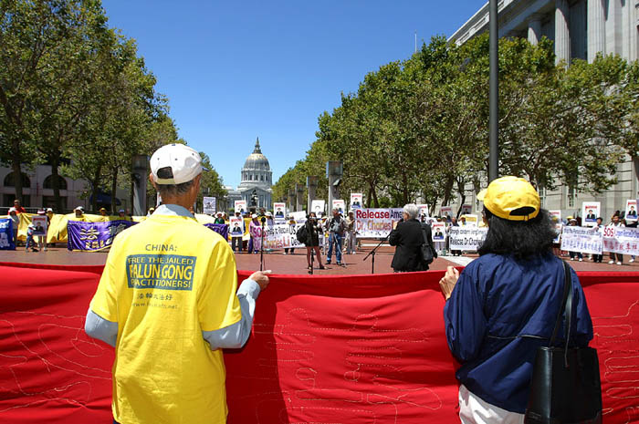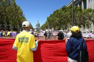 集会结束后,百余名各界人士高举停止迫害法轮功,还李祥春人身自由等横幅和标语,从联合国广场游行至贾斯廷-荷曼(Justin Herman)广场。结束了这次的营救活动。