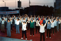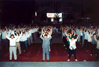 据功友回忆:当时观看的群众真是人山人海,他们是第一个被邀上台表演的节目,可见当时政府是多么的支持。可是后来在2002年,却成了潍坊市逼广大学生和有关单位看诬蔑大法电影的地方。这都是大陆邪恶独裁者江××因个人妒忌一手发动的这场野蛮迫害造成的。