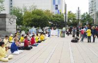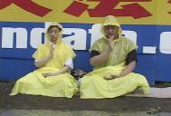 周六下午在中领馆前发正念时,也经历了一场倾盆大雨。大法弟子在邪恶残酷的迫害下,靠正信正念正行,走过了四年。我们正法中的任何一次活动岂是一场雨能阻挡得了的呢。