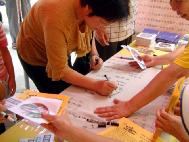 征集签名的摊位处也时有感人的事发生着,很多人都是主动来签名的,他们只远远地看了看标题就走过来毅然的签下了自己的名字,表示了反对香港23条立法及内心正义的呼声。有一个男子更是表达了他强烈的正义感和对大法的支持,他签下名字后对我们竖起大拇指大声说:“你们很了不起,我支持你们!他们〈指香港政府〉立法是绝对不会成的,你们放心吧,他们绝对立不了这个法的。你们一定要放心,中国(江氏)政府这样暴力对法轮功太不像话了,一定不会长久的……”他一直重复说着「你们放心」,随着身影渐渐远去,话音还远远的飘着过来。