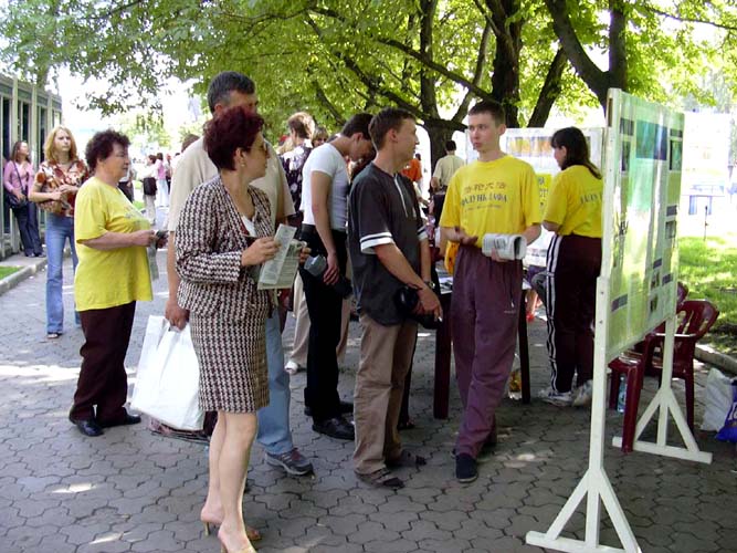 【明慧网2003年7月16日】6月28日“乌克兰青年日”,社会组织交流会在顿涅斯州的中心举行,象去年一样我们法轮功学员被邀请参加这个活动。