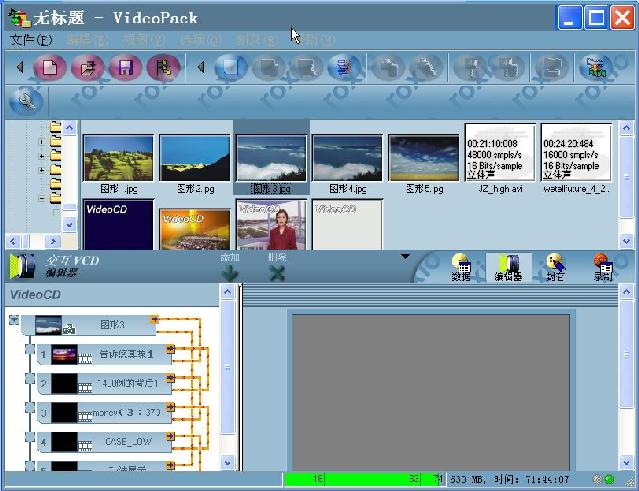用于播放的视频和音频文件,如DAT文件,MPG文件等可一个一个的加入其中,这与一般的软件没什么两样。最关键的是一个“路由”的设置。它是用来设置哪一个文件先播放,哪一个后播放。即,是用来设置播放秩序的。点按“路由”按钮,左下面窗口各个文件之间会有一条橙色的线条,里面有红色的箭头在走动。可以用鼠标拖动而改变线条的走向。记住:红箭头是怎么走的,最后VCD就是按照那样的顺序播放的。多试几次后就可掌握。