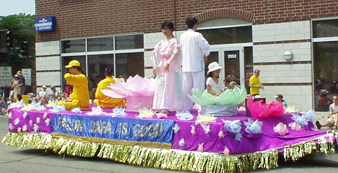 美丽、宁和、主旨突出,法轮大法花车获得2003年埃文斯顿市独立日游行“社区彩车类”第一名