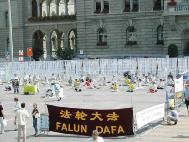 法轮功学员们在这次活动中展示了5套功法。在新闻发布会上学员们回顾了4年来江政府对法轮功的残酷镇压和时事,如“非典”和香港的恶法23条。“基督行动反对迫害”(ACAT)非政府组织的发言人发表了演讲,学员们还朗读了一些议员的支持信件。
