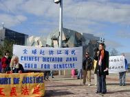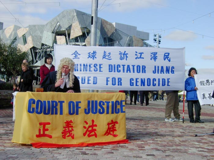 过往群众饶有兴致地观看了法庭的审判、索取了大法资料并在公审江XX的决议书上签名。许多游人用自己的摄像机或照相机摄下这一幕。一名曾在中国哈尔滨市附近一个小镇上任英语教师的澳洲男子说,他所在的那个中国小镇根本没有天主教徒,可当地政府却大兴土木修建教堂,装点门面,可见造假之风在中国之盛。