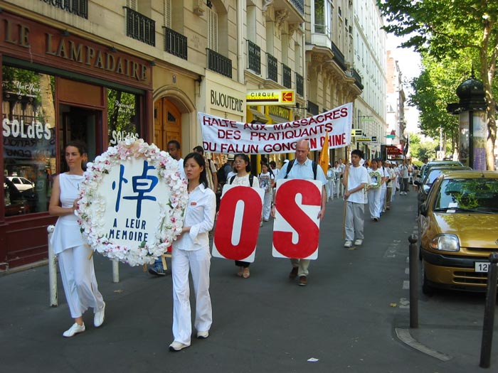 图片报导:7.20之际法国法轮功学员游行讲真象 揭露谎言与迫害