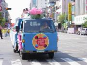 之后,大法弟子们精神抖擞地出发游行。此次游行的路线安排得很好,行经高雄市五大百货公司人潮众多的地方,各地区学员分别穿着”公审江泽民”、”迫害事例”及”法轮大法好”的背心,手拿着各式活动布条进行游行,扶老携幼、祥和壮观的场面令高雄市民印象深刻。
