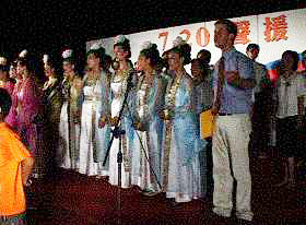 游行于下午五点顺利地在文化中心结束,晚上六点半钟在劳工公园举行「声援晚会」。法轮功学员们展现多才多艺的一面,祥和的功法表演、2002年见证影片、及大法歌曲演唱都凝聚了大法弟子们的心。晚会于9点发完正念后结束,为今天活动划下圆满句点。