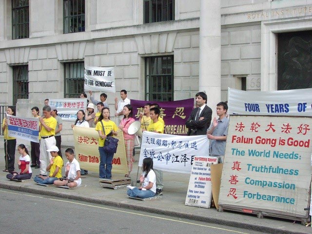 今年的720,许多英国弟子奔赴华盛顿参加那里的法会,可今天参加活动的学员依然很多。许多同修从遥远的北部赶来,还有的同修由于工作原因不能参加全部活动,哪怕在路上花费三四个小时,也专程赶到使馆门前来参加今天的活动。其中一个同修半夜四点钟赶到,早上七点又乘车离去了,但他说,哪怕只在这发两三个小时的正念,来回跑这么一趟也值得。